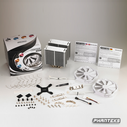 Per la serie Premium Edition, Phanteks presenta il suo dissipatore di fascia enthusiast: il PH-TC14PE. Il dissipatore per CPU ha una struttura verticale a doppia torre con supporto fino a 3 ventole da 120 o 140 mm: vengono fornite due ventole da 140 mm ed una clip per poterne installare una terza.Il PH-TC14PE è compatibile con i socket Intel LGA 775 / 1155 / 1156 / 1366 ed AMD AM2 / AM2+ / AM3. Il sistema dissipante è composto da 5 heat-pipes da 8 mm di diametro in rame nichelato e da una struttura lamellare in alluminio. Le dimensioni complessive sono generose: misura 159 x 140 x 171 mm e pesa 1250 g, con le due ventole fornite. Le tecnologie adottate, come PATS (Physical Anti-Oxidant Thermal Shield) e CPSC (Cold Plasma Spraying Coating Technology), aumentano le prestazioni di raffreddamento e la conducibilità termica.