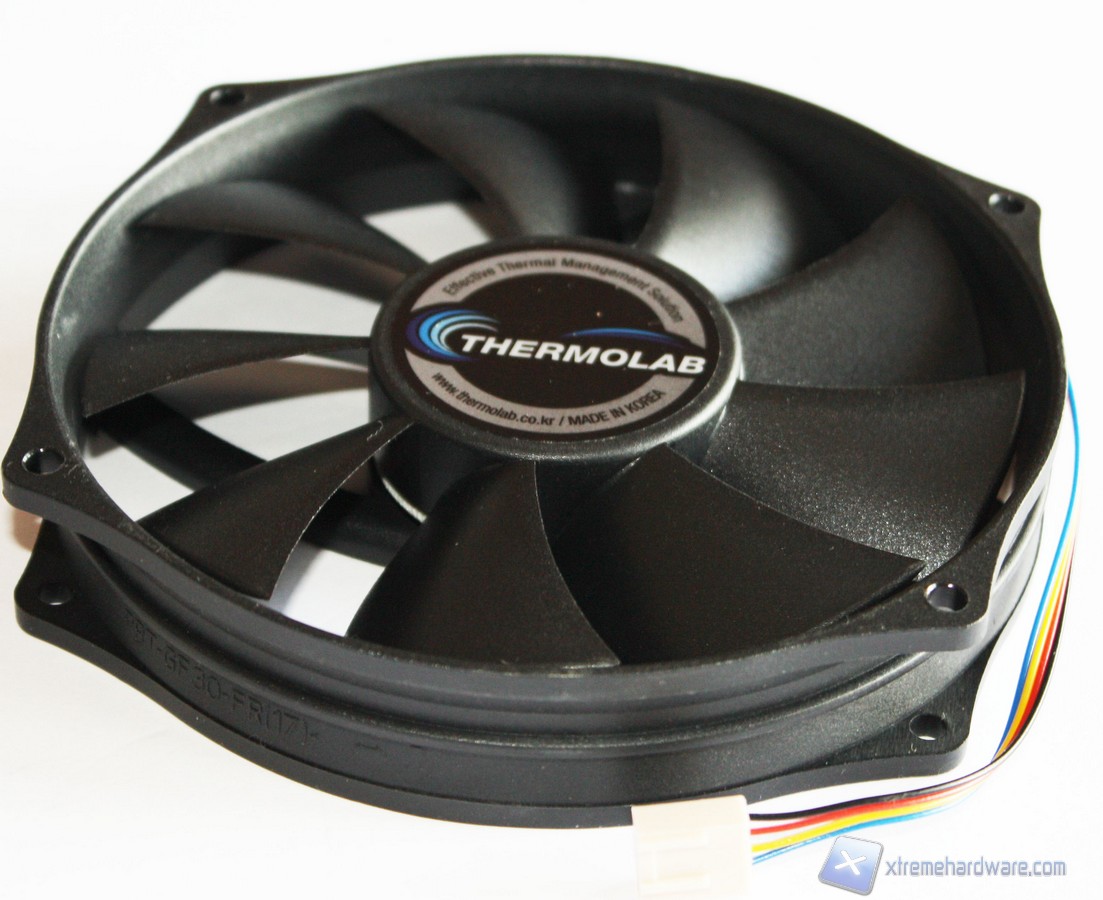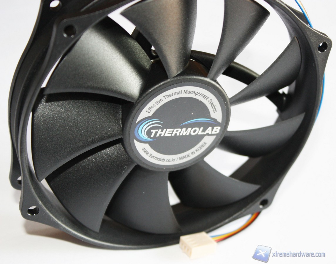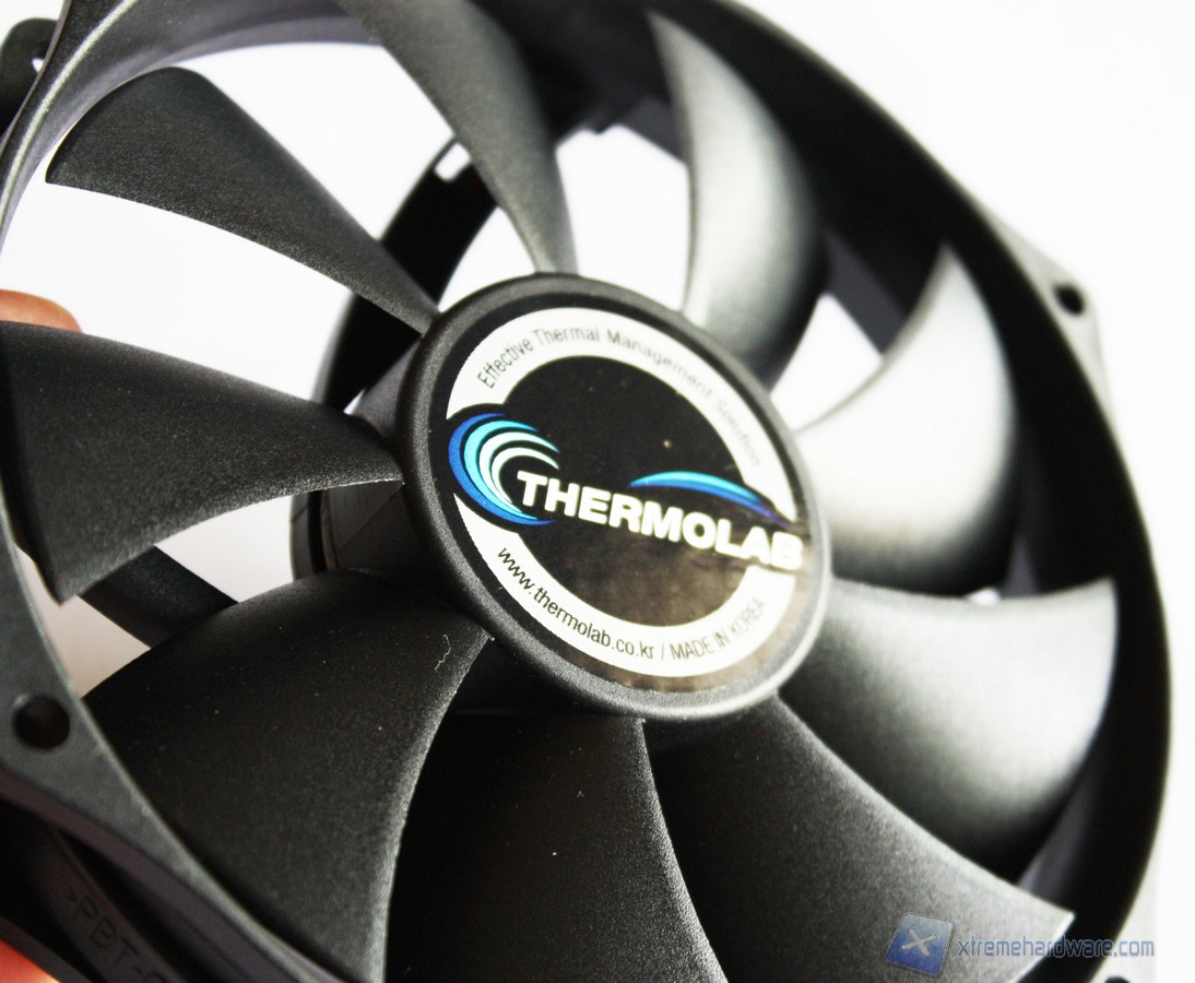 Abbiamo già detto che in dotazione al Trinity è presente una ventola da 130mm PWM. Questa è prodotta da ADDA, modello AR1212LX-A9BGL, molto indicata per il dissipatore in questione. La ventola impiegata da Thermolab per il Trinity è unica come dimensione, non ci sono altri modelli del brand che montano ventole da 130 millimetri. Questo diametro è poco diffuso anche tra altri brand, ma si sposa perfettamente con le dimensioni compatte del Trinity.