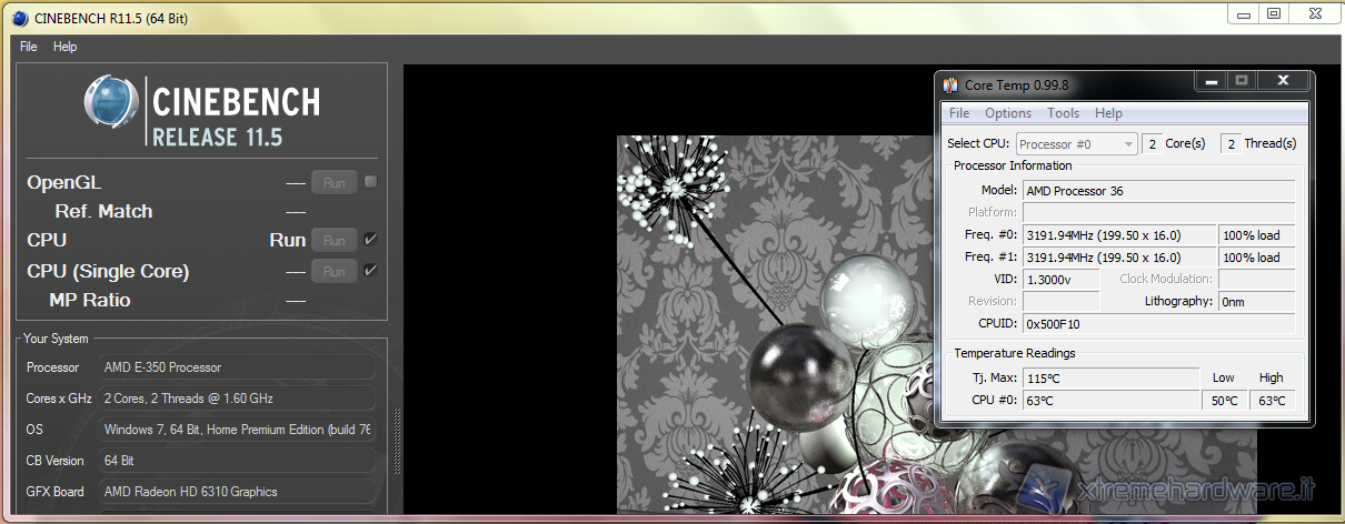 During the benchmark sessions the temperature has stabilized at 63 degrees and the fan has never been particularly troublesome.