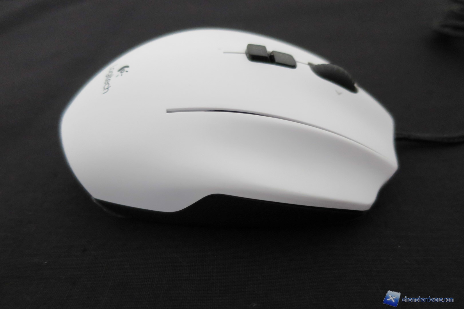 Il Logitech G600, seppur un modello precedente all’attuale serie S, è un mouse ancora ampiamento utilizzato ed apprezzato grazie alla sua forma ergonomica (che ricorda la forma di una conchiglia) ed ai suoi innumerevoli tasti che permetteranno di usufruire ed apprezzare al meglio i giochi MMO. Le dimensioni del G600 sono di 118 x 75 x 41 mm per un peso di 140 grammi circa. Le dimensioni sono tali da permettere un po’ tutte le prese, dalla Palm alla Claw, anche se la Palma Grip è sicuramente la più consigliabile, vista anche la forma ergonomica dello stesso. Logitech è sempre attenta all’aspetto “ergonomico” dei propri mouse per rendere l’esperienza di gioco ottimale. Essendo un mouse per MMO, è ovvia l’abbondanza di tasti presenti sul mouse. Il sensore adottato per il G600 è di tipo laser e viene impiegata una versione modificata dalla stessa Logitech del diffuso AVAGO ANDS-9800. Nel dettaglio, il sensore S9808, risulta abbastanza preciso e reattivo come vedremo a seguire durante i nostri test ed impressioni. Iniziamo ora l’analisi dalla parte superiore, dove troviamo una superficie leggermente ruvida in plastica che evita una sudorazione eccessiva della mano. La forma scelta per il Logitech G600 consente inoltre di poggiare la mano in tutta naturalezza lasciando solo il mignolo “vagante” mentre anche l’anulare troverà una sua collocazione su una scanalatura con relativo tasto nella parte destra del mouse. La dotazione di tasti della parte superiore del mouse si caratterizza per la presenza dei due classici tasti destro/sinistro con l’aggiunta di un tasto G (dove poggerà l’anulare). Non manca uno scroll bidirezionale con un leggero rivestimento in gomma e di tipo cliccabile. Poco più sotto i tasti G8-G7 che potranno essere assegnati per il cambio DPI o altre funzioni a discrezione dell’utente. Infine il classico logo Logitech di colore nero per staccare sul bianco, colore del modello di G600 ricevuto. Ricordiamo che il Logitech G600 è disponibile in due colorazioni, nera o bianca.
