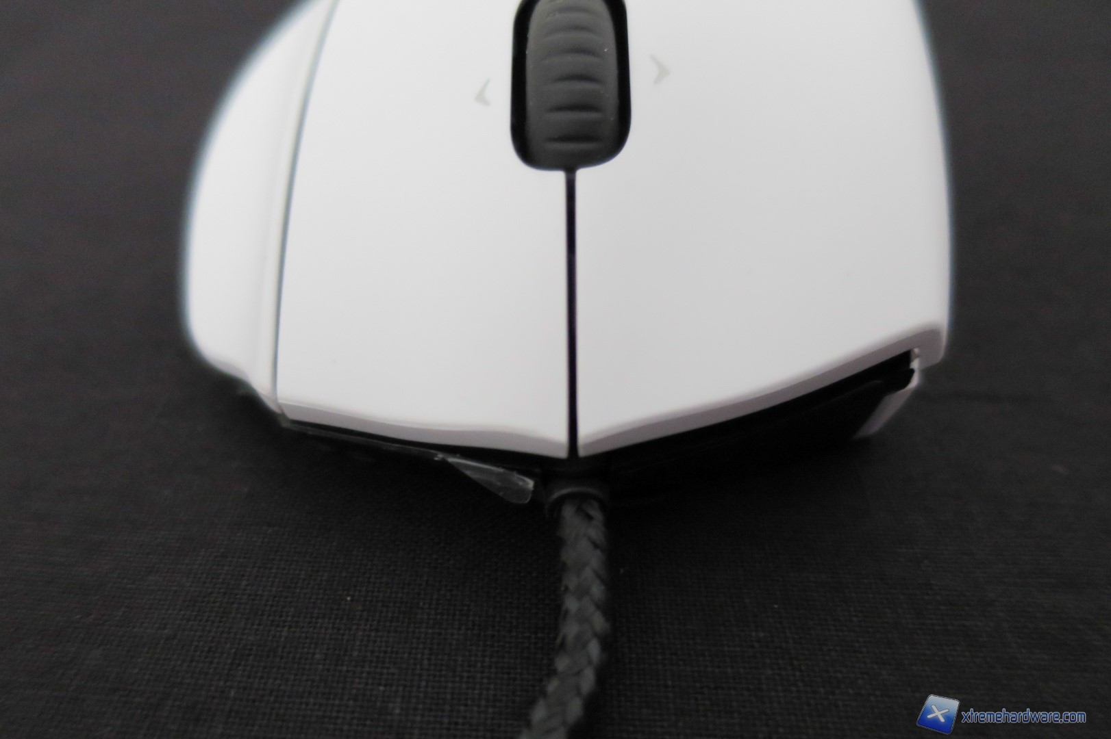 Ruotando il mouse e portandolo in posizione frontale notiamo anche la perfetta simmetria (seppur non è un mouse simmetrico) dei tasti principali che si ‘’fondono’’ con la scossa generale del mouse.