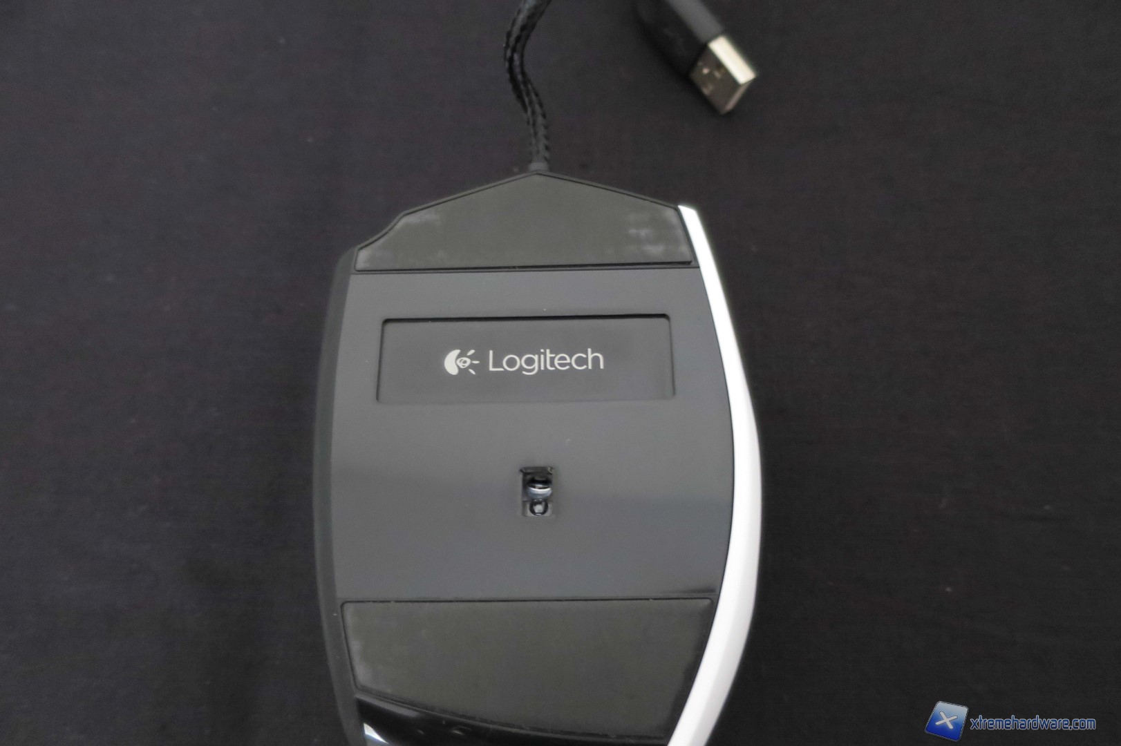 Capovolgendo il mouse invece troviamo una superficie quasi lucida caratterizzata da due semplici mousefeet posti nella parte superiore e in quella inferiore oltre al logo Logitech ed al sensore laser posto al centro dello stesso. Ricordiamo ancora una volta l’adozione da parte di Logitech di una versione modificata dalla stessa del modello AVAGO ADNS-9800. Nel Logitech G600 trova dunque posto un sensore laser modello S9808 di produzione AVAGO ma modificato da Logitech.