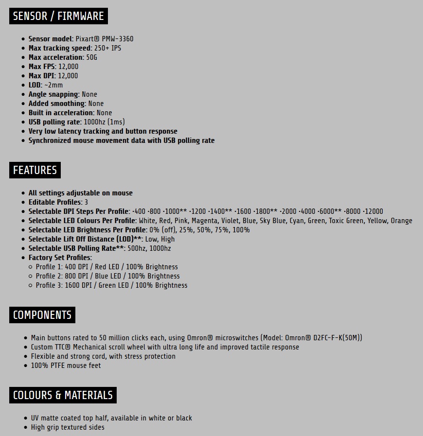 Procediamo ad elencare brevemente le caratteristiche del mouse Ninox Venator: