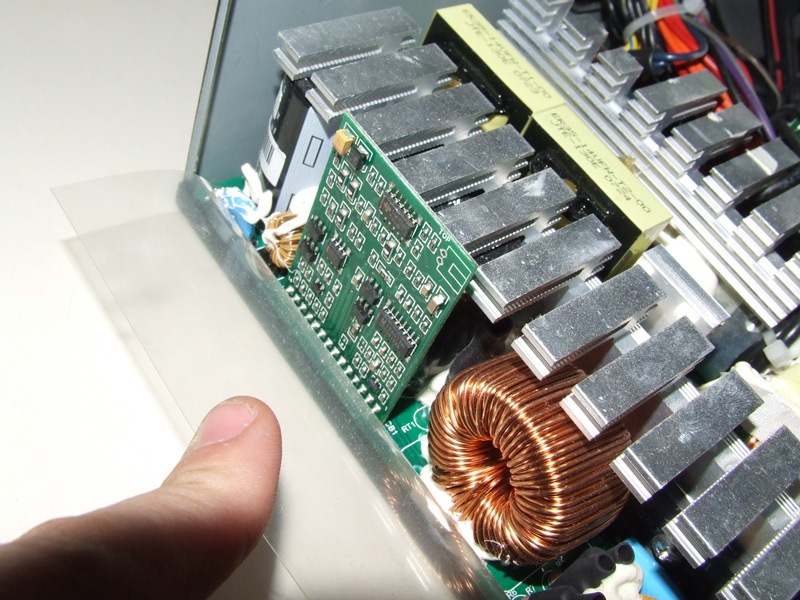 InternoL'interno del SilverStone OP700 rispecchia la classica divisione primario-trasformatori-secondario, separati dai dissipatori in alluminio su cui sono fissati mosfet della sezione switching. I componenti utilizzati son di ottima fattura, infatti possiamo notare che tutti i condensatori primari sono giapponesi.
