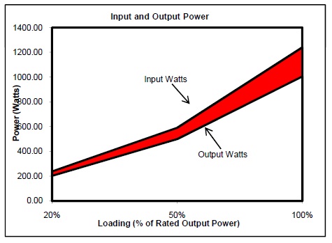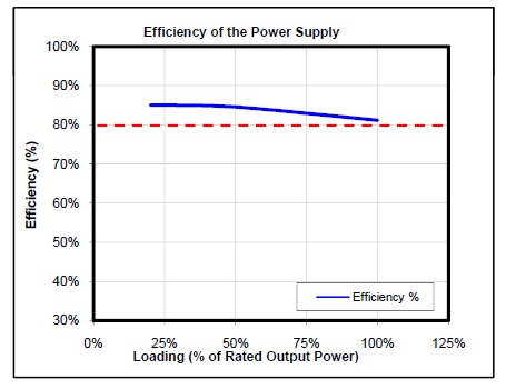 Dai risultati fatti l'efficienza media è del 84.54% sul 50% di carico (uso tipico), mentre arriviamo ad un average del 83.57%, invece con un carico del 20% siamo al 85,08%, sotto pieno carico l'efficienza scende al 81,09%. Queste condizioni di efficienza assegnano il titolo di 80+ compilant.