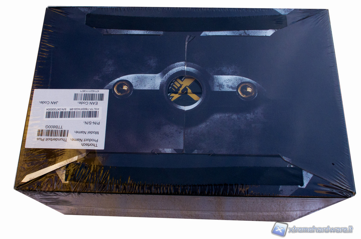 Il box del Thunderbolt Plus ha un design molto curato, con una colorazione scura, dove il nero e il giallo sono predominanti.