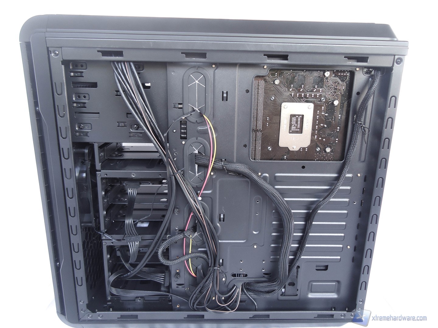 Grazie al più che adeguato spazio presente al di dietro della piastra della scheda madre, il cablaggio non richiede particolare attenzione, dobbiamo stare attenti solamente a come posizioniamo il cavo di alimentazione da 24pin, il quale non si deve accavallare con nessun altro cavo, perché altrimenti non riusciremo a chiudere la paratia laterale.