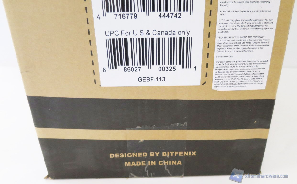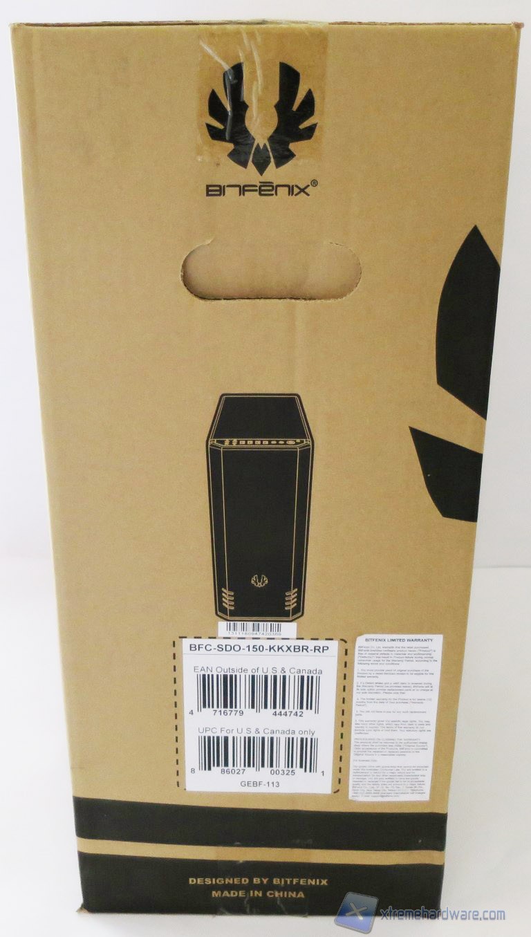 La confezione del BitFenix Shadow è come sempre realizzata in cartone. Nella parte frontale ed in quella posteriore vengono riportate alcune informazioni come il modello del case, un’immagine illustrativa dello stesso, alcune caratteristiche salienti del prodotto ed i riferimenti all’azienda.