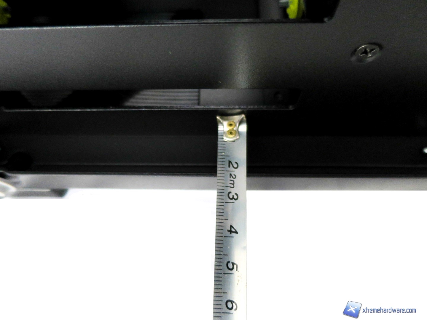 Sopra a tale foro inoltre troviamo il foro per il passaggio del cavo EPS 8pin, anche questo di buone dimensioni, permettendo di alloggiare cavi sleevati singolarmente, che faranno più volume rispetto ad un classico cavo o flat dell’alimentatore.