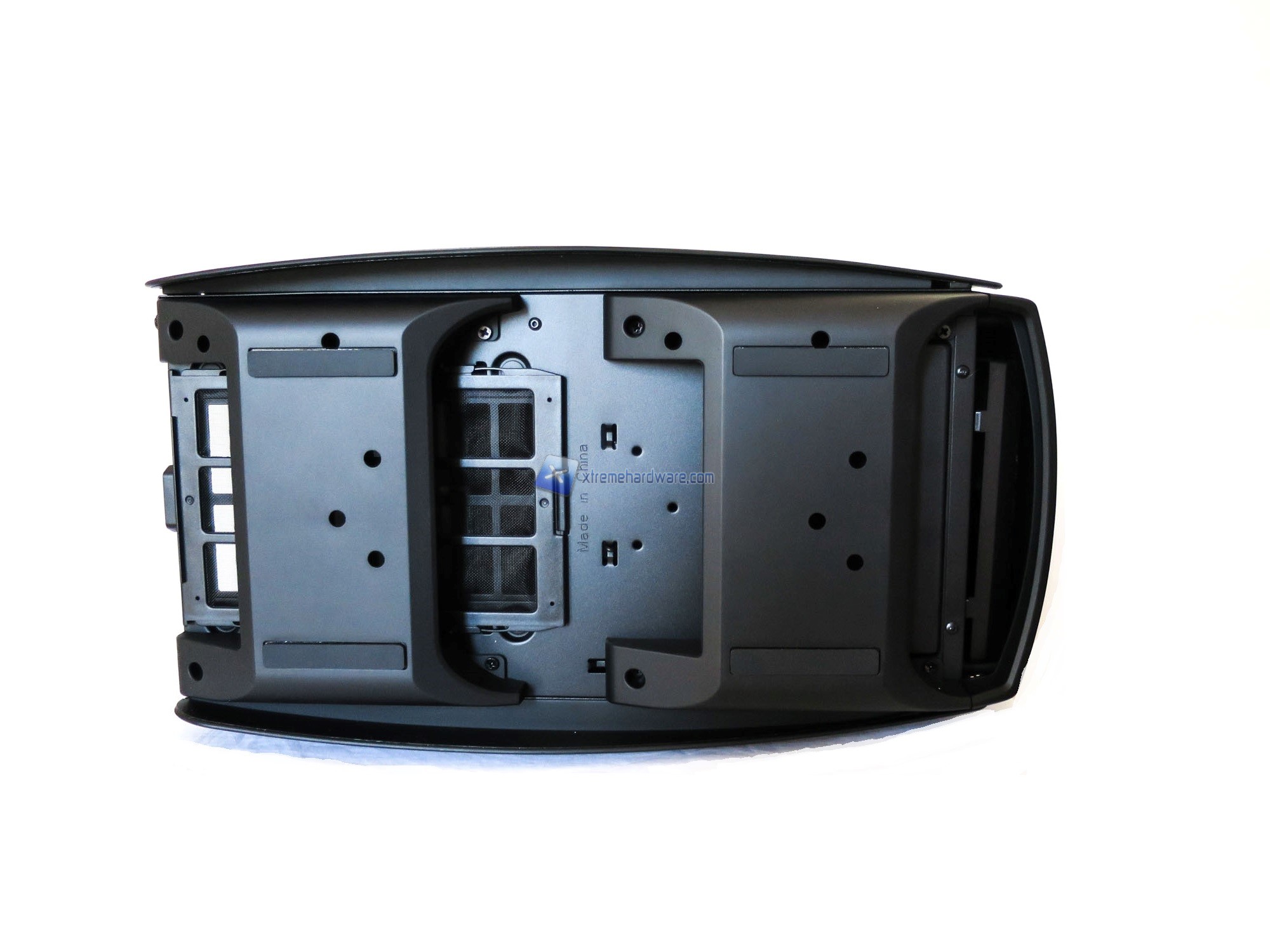 Infine, capovolto il case, osserviamo due supporti/basi in plastica rialzate con strisce, a mò di piedini, in gomma. Non manca un filtro antipolvere removibile anche qui ed in corrispondenza della ventola dell’alimentatore.