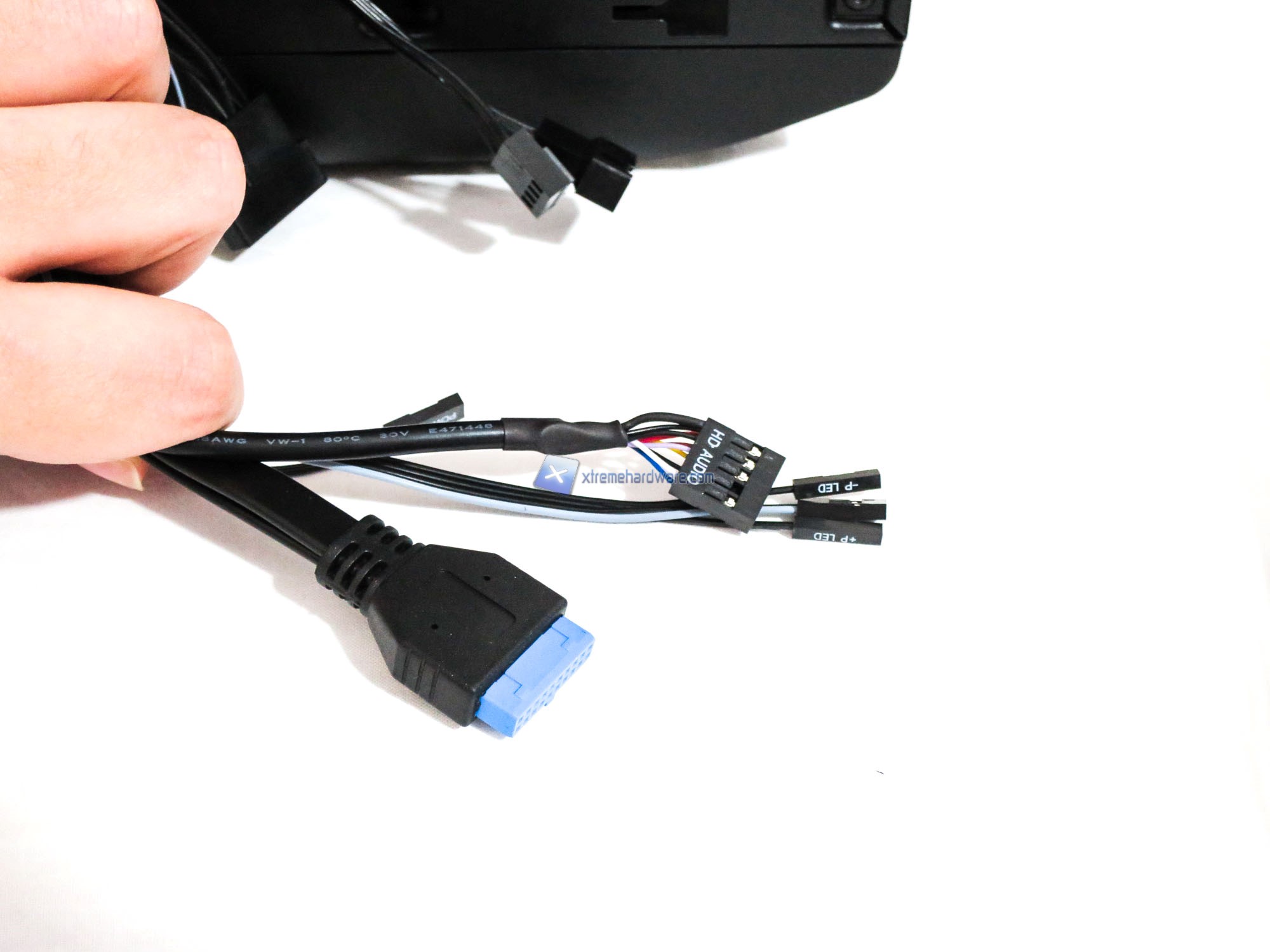 Dettaglio connessioni interne. Le connessioni interne sono  caratterizzate per la presenza di un connettore Molex per alimentare il sistema di retroilluminazione del case e di connettori adattatori per CPU_Fan_OPT.