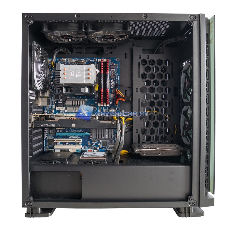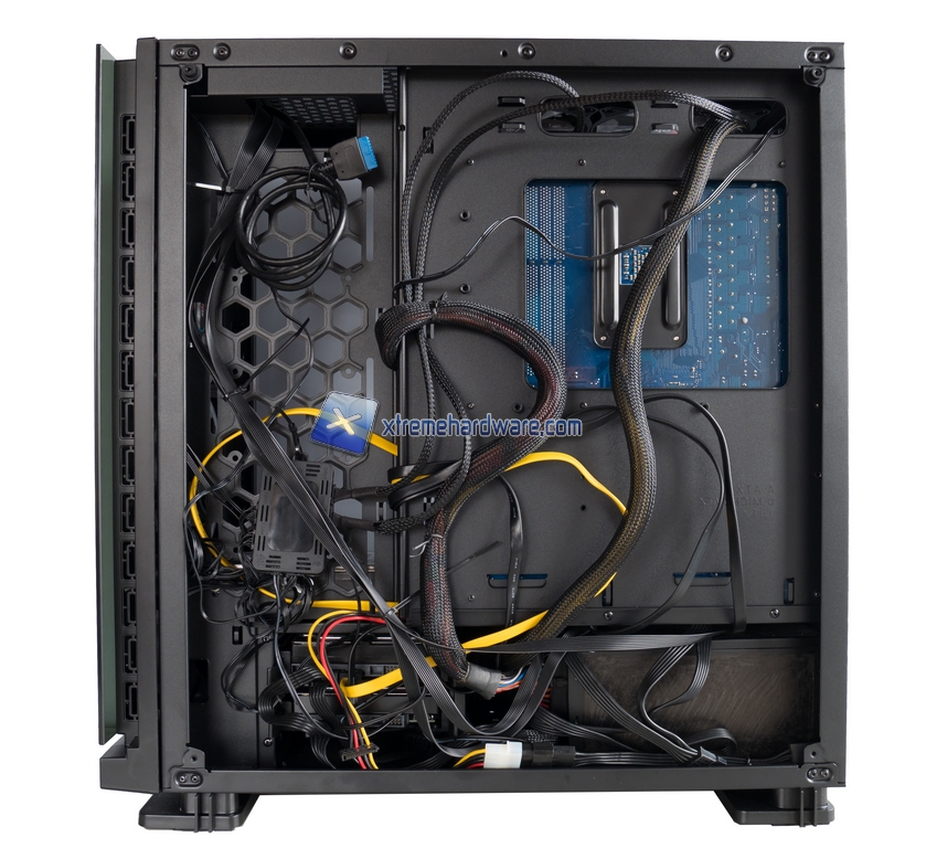 Nel complesso, comunque, dietro la motherboard tray lo spazio per i cavi è sufficiente per ottenere un risultato relativamente pulito e per lo meno non si ha il problema di non sapere dove far passare i cavi.