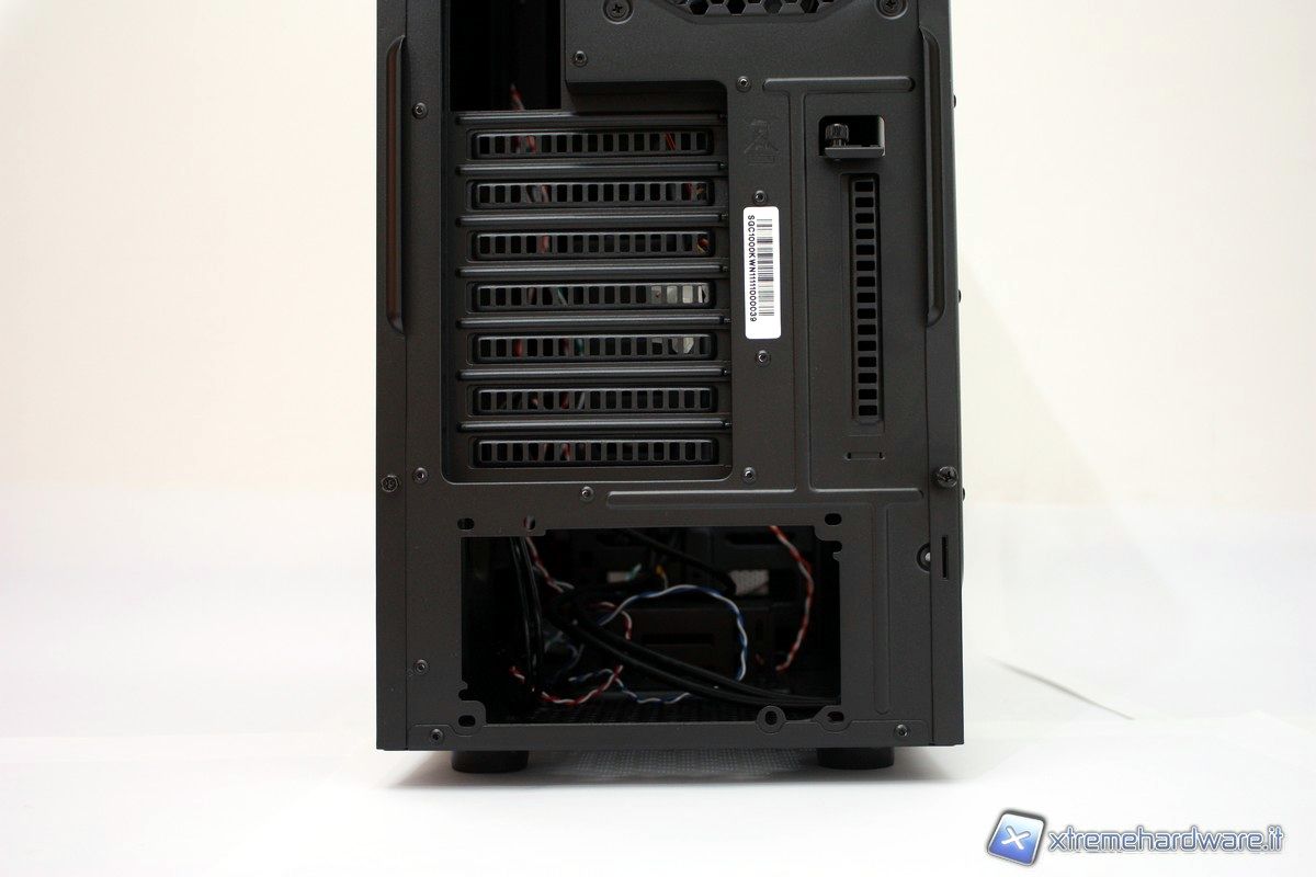 7 son gli slot per eventuali periferiche PCI. I copri-slot ventilati sono fissati con classiche viti di colore nero. Avremmo apprezzato l’utilizzo di thumb-screw o di altri sistemi tool-free. In alcuni casi 8 slot PCI potrebbero essere necessari.