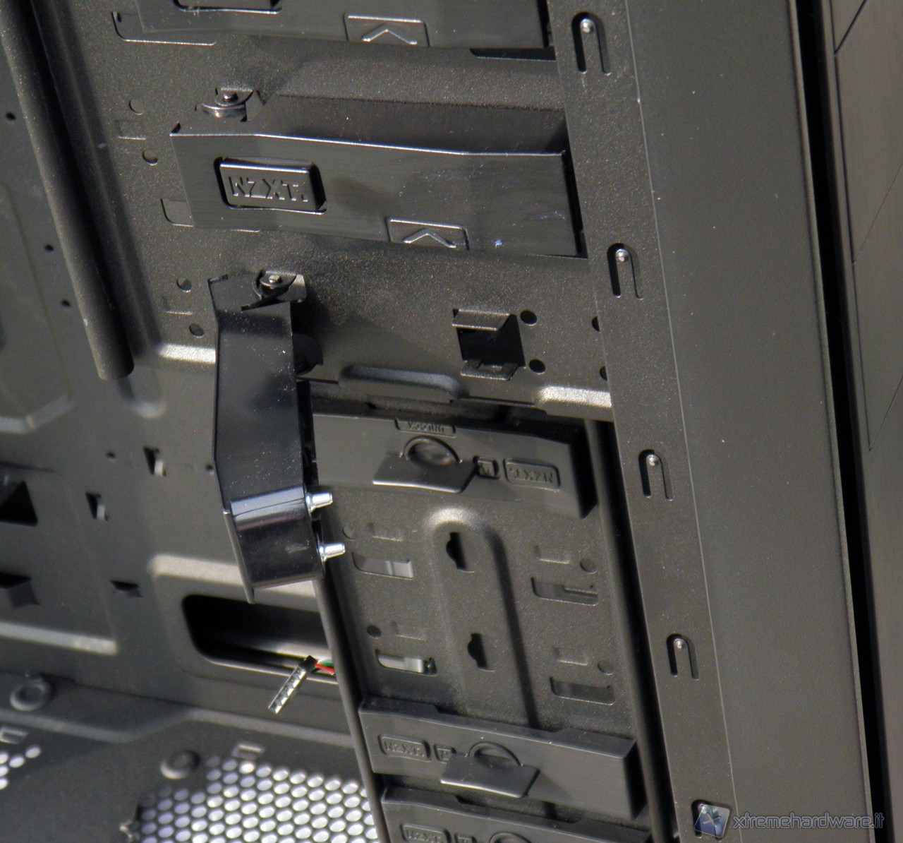 Staffe tool-less permettono il fissaggio delle varie unità e, come si evince dall'immagine, solo quelli da 3.5'' sono rimovibili, mentre mancano anche all'interno adattatori per unità da 2.5'' necessari ad esempio per installare un SSD.