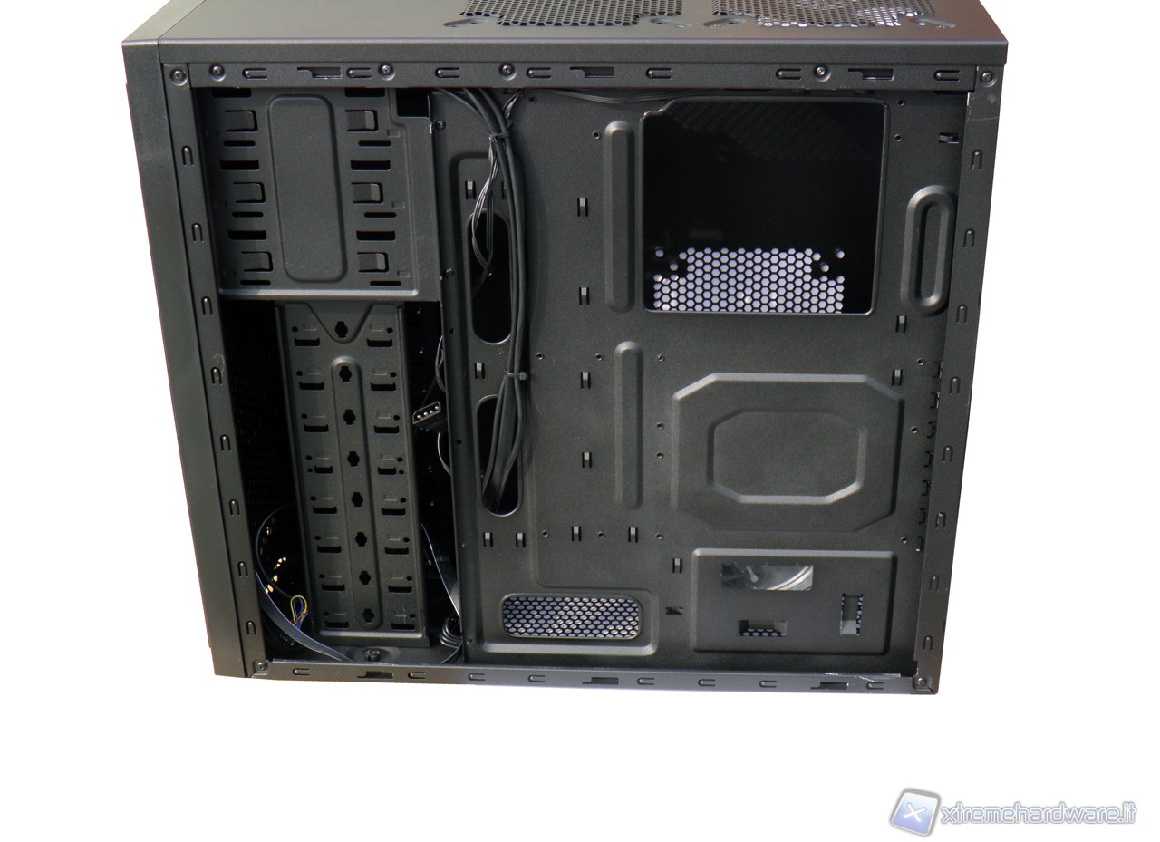 Ottimo l'interno completamente verniciato di nero bucciato, come l'esterno, cosa che impreziosisce il case. Considerando il prezzo è un dettaglio molto apprezzato, anche se la verniciatura non ci è sembrata particolarmente resistente al contatto con altri componenti di assemblaggio.