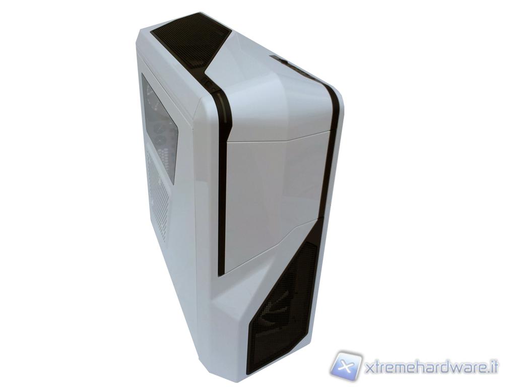 La parte frontale dell'NZXT Phantom 410 è rimasta pressoché invariata rispetto a quella utilizzata per il fratello maggiore, la fascia nera che attraversa sia il frontale che la parte superiore viene riproposta anche in questa versione. Come abbiamo detto in precedenza la colorazione principale è bianca ma probabilmente il case verrà commercializzato sin da subito anche nelle colorazioni rosse e nere.