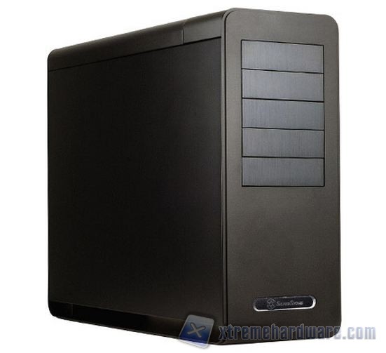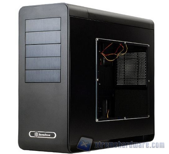 Il telaio è interamente in alluminio, dello spessore di 4.5 mm e presenta una colorazione nera e rossa; precisiamo che nella versione non “Limited Edition” la colorazione di base è nera. I frontalini hanno una classica finitura satinata di ottima qualità e sono anch’essi in alluminio. Sono presenti 4 slot da 5.25”, oltre al logo SilverStone in basso. I pulsanti di reset, accensione, l’indicatore di lettura degli hard disk ed i connettori ausiliari sono situati nella parte superiore. Anche in questo caso il posizionamento dei coprislot da 5.25” è davvero ottimo, il che permette di dar lustro all’intera struttura e di uniformare il design, leggermente retrò. Nella parte superiore, come è stato già menzionato, sono posizionati i due ingressi USB 2.0 ed i consueti ingressi per microfono e cuffie.