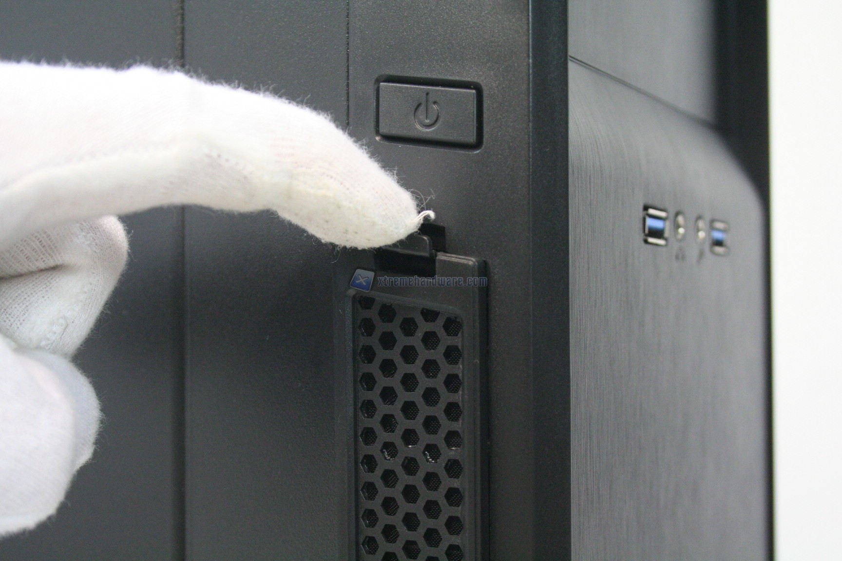 C’è  una configurazione classica, zero fori di ventilazione ma quattro piedi con rivestimento gommato antivibrazioni e antigraffi per il parquet. Non sarà possibile installare rotelle ma sarà possibile installare un disco da 2.5” nella parte inferiore, come abbiamo fatto nel corso della recensione. Non c’è il supporto per ventole accessorie. I quattro supporti sono di altezza superiore allo standard, favorendo il pescaggio di aria dal basso e limitando l’ingresso della polvere. Sarà quindi possibile posizionare il cabinet anche su una moquette o un tappeto.