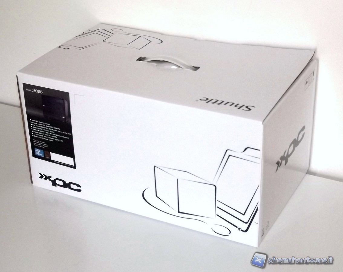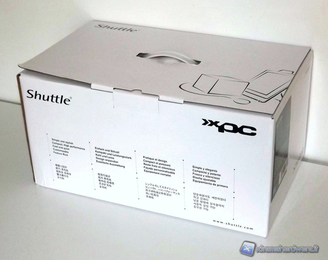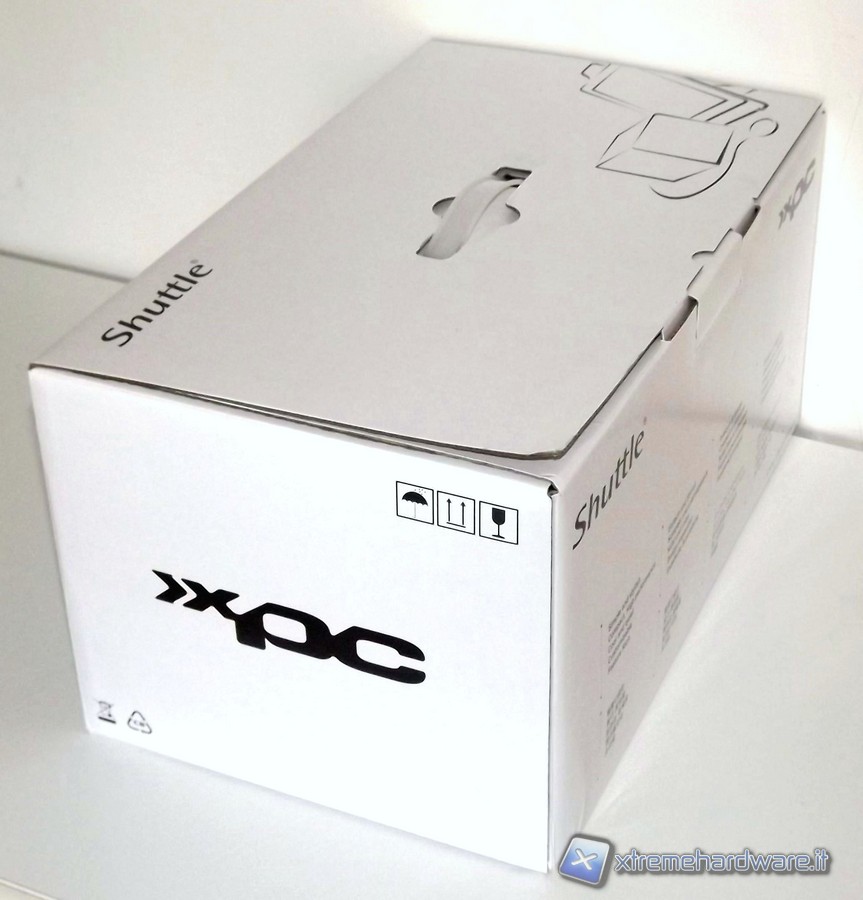 Il prodotto di Shuttle è alloggiato dentro una scatola dallo sfondo bianco, dove sono messi in evidenza il marchio Shuttle, la scritta XPC ed alcune caratteristiche principali del prodotto. ll cabinet è protetto da un involucro che fa uso di  polistirolo e cartone, che proteggono il prodotto dagli urti durante il trasporto e lo  mantengono integro fino al consumatore finale. Inoltre nella parte superiore della scatola è presente una maniglia che ne facilita le operazioni di trasporto.