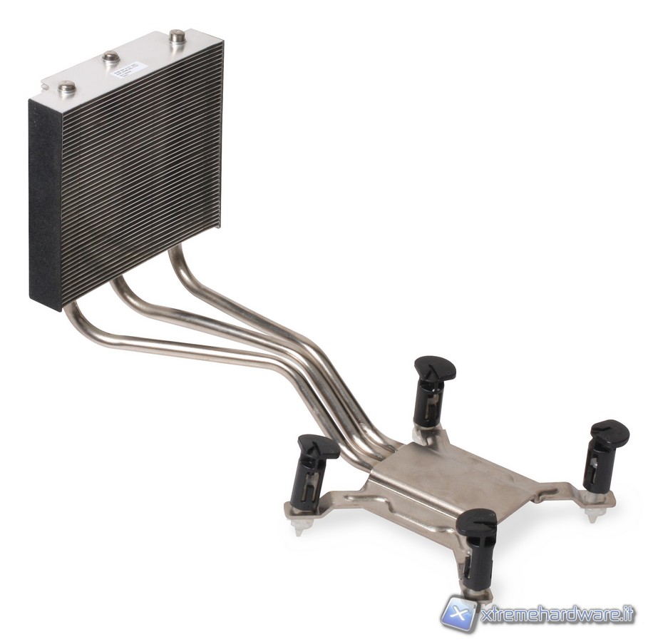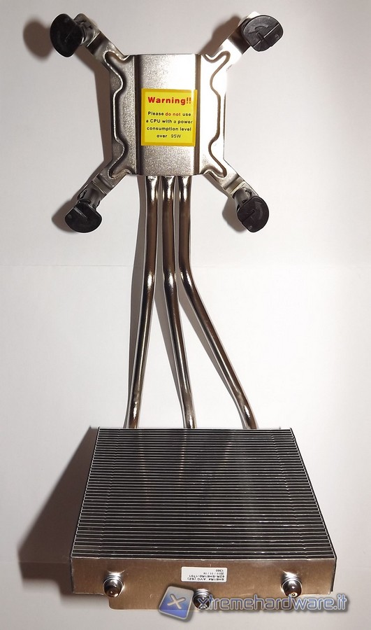 La ventola si trova protetta dentro un piccolo chassis dove è anche installata una griglia protettiva. La ventola ha serigrafata il marchio AVC, sempre prodotto a Taiwan ed è di tipo bearing idraulica con la sigla DS0922R12HP207 e connettore a 4pin, quindi in grado di essere termo regolata. Il dissipatore ICE di Shuttle è dodato di una base in rame, non lucidata a specchio; il corpo invece è in alluminio e da questa partono 3 heat-pipe che entrano nel corpo di fitte lamelle. Sia heat-pipe che pacco lamellare sono in alluminio. Nella base del dissipatore è presente un'etichetta che avverte che questo dissipatore va usato per CPU con un TDP massimo di 95W. Non è questo un problema in quanto le attuali CPU Intel di seconda generazione hanno un massimo di 95W per quanto riguarda il Thermal Design Power.