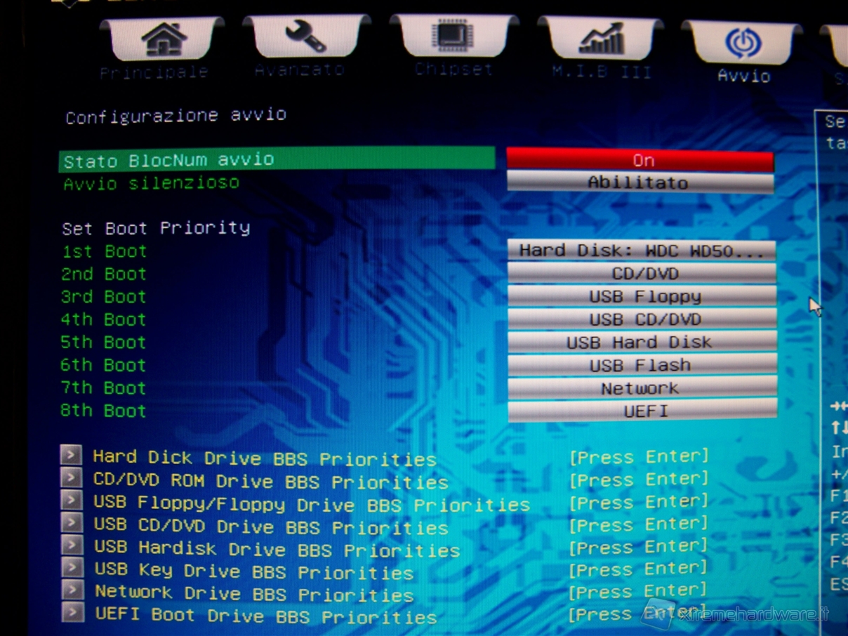 In questa schermata possiamo personalizzare l'ordine di boot delle periferiche.