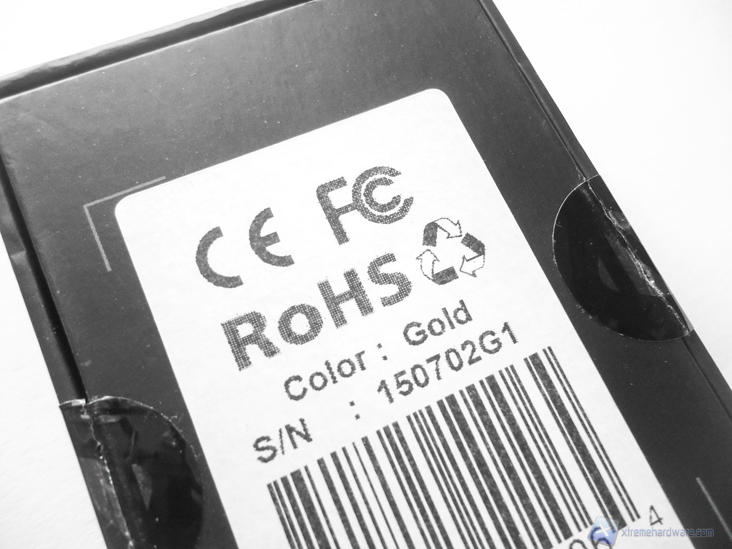 Mettendo in mostra la parte posteriore notiamo un grande adesivo centrale che riporta le varie certificazioni, il serial number e il colore del prodotto.