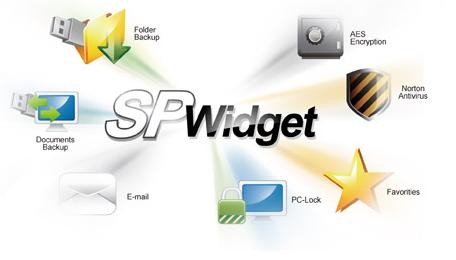 Nel supporto viene fornito anche il software SP Widget backup & security per la messa in sicurezza dei dati: si tratta di un software semplice ed intuitivo da utilizzare, che permette di sincronizzare il backup delle proprie cartelle, dei siti web preferiti e della posta di Outlook o Outlook Express in pochi passi, con la possibilità di mettere in sicurezza i propri dati criptandoli. Inoltre, viene incluso il software Symantec Norton Internet Security in versione prova per 60 giorni.